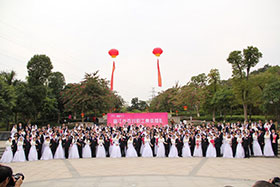 【本報(bào)訊】由晉江市總工會(huì)、人力資源和社會(huì)保障局、郵政局主辦的“幸福百分百”晉江百對(duì)職工集體婚禮于2013年1月1日舉行,120對(duì)新人沐浴著新年的氣息,在眾人的祝福中,喜結(jié)良緣。晉江市委常委、常務(wù)副市長許宏程出席此次活動(dòng),為新人們送上了最溫馨的祝福,并為百對(duì)新人證婚。